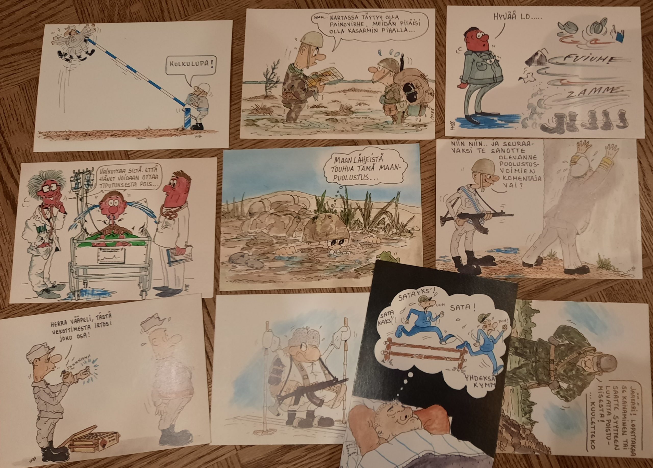Vuonna 1982-83 Vekaranjärven sotilaskodista ostettuja postikortteja. Käyttämättömiä, suoria ja hyväkuntoisia. 10 kpl – yhteensä 20 euroa.